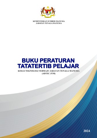 BUKU PERATURAN TATATERTIB PELAJARKOLEJ TEKNOLOGI TERMAJU JABATAN TENAGA MANUSIA(ADTEC JTM)KEMENTERIAN SUMBER MANUSIAJABATAN TENAGA MANUSIA2024